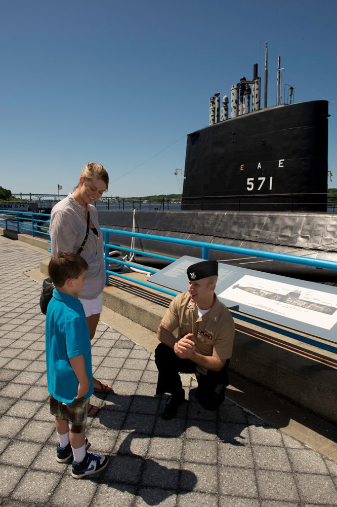Using an actual or virtual tour of USS Nautilus from the pier area, observe the submarine topside, sail, masts, and antennas. Consider the various antennas protruding from the sail, and determine their possible uses of electromagnetic waves, visible light, and sound waves. Compare the 1950’s era Nautilus to today’s 21st century submarine antennas: which are similar and which are different.